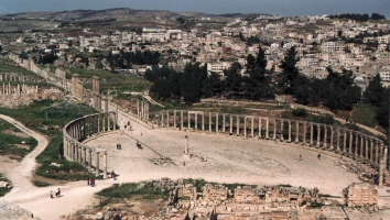 로마인들이 이스라엘 동편의 거라사 지역의 제우스 성전 앞에